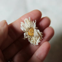 Chrysanthemum Flower packaged by hand at The Mill Coffee Roasting & Tea Studio in Sacramento, California. Our new tea pouches use compostable plant fiber and recyclable materials with one thin plastic inner layer to protect the herbs from moisture and environmental aromatics.