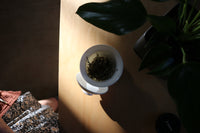 Tribute Snow Lotus is packaged by hand at our East Sacramento tea studio in a resealable premium tea pouch adorned with watercolor artworks.